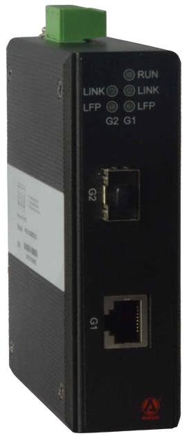 CLOVER-01G is industrial Gigabit media converter & support 1- 10 Base-T/100 Base-TX/1000 Base- TX port and 1 1000 Base-X SFP port., -20°C to 70°C working temperature.