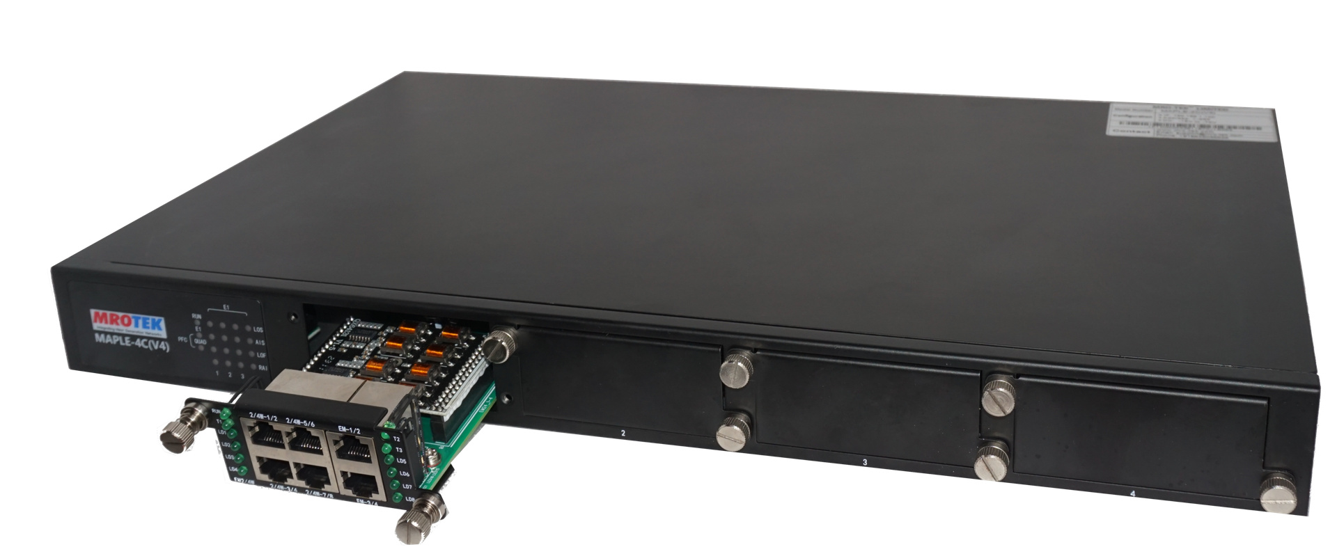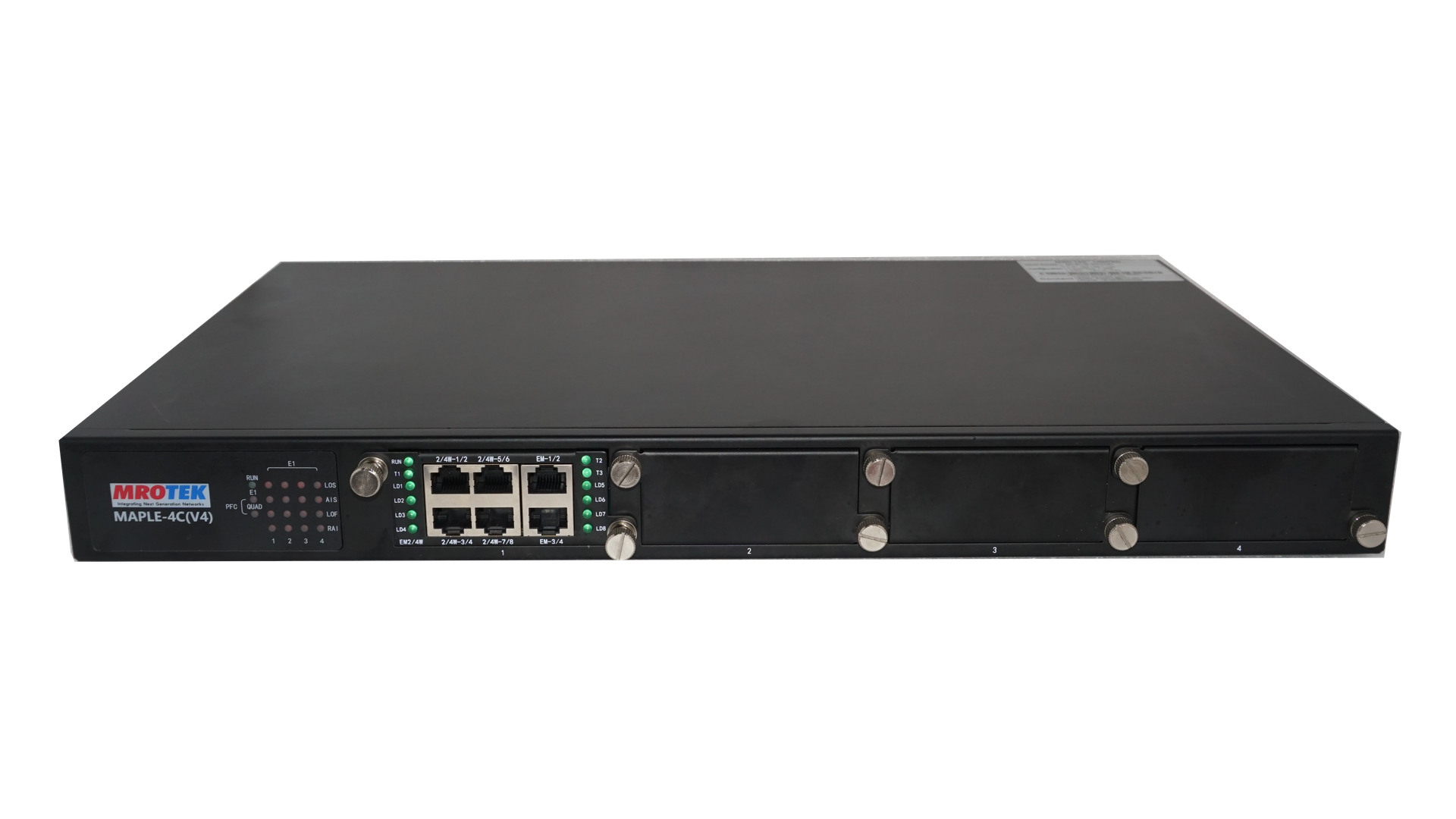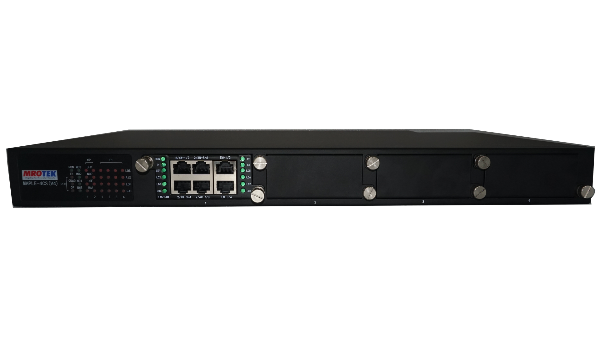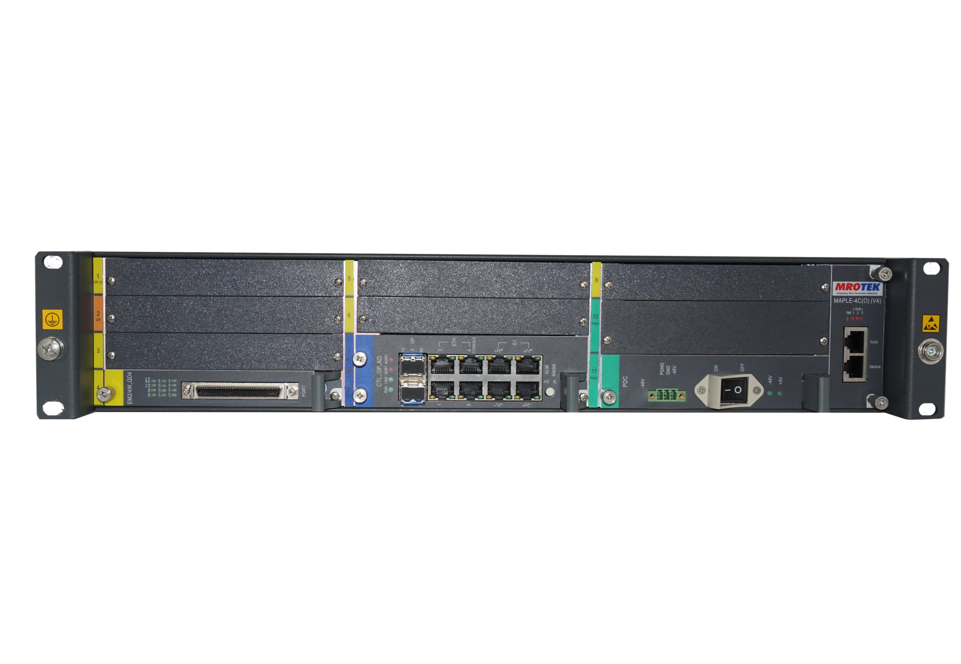 MAPLE-4C(O) is a Managed, modular integrated Access TDM multiplexer which integrates multiple dedicated data, voice and LAN channels over multiple main (network) links. It can provide Maximum 8E1 capacity for accessing and transmission with cross-connect capacity is 2048×2048 64K.